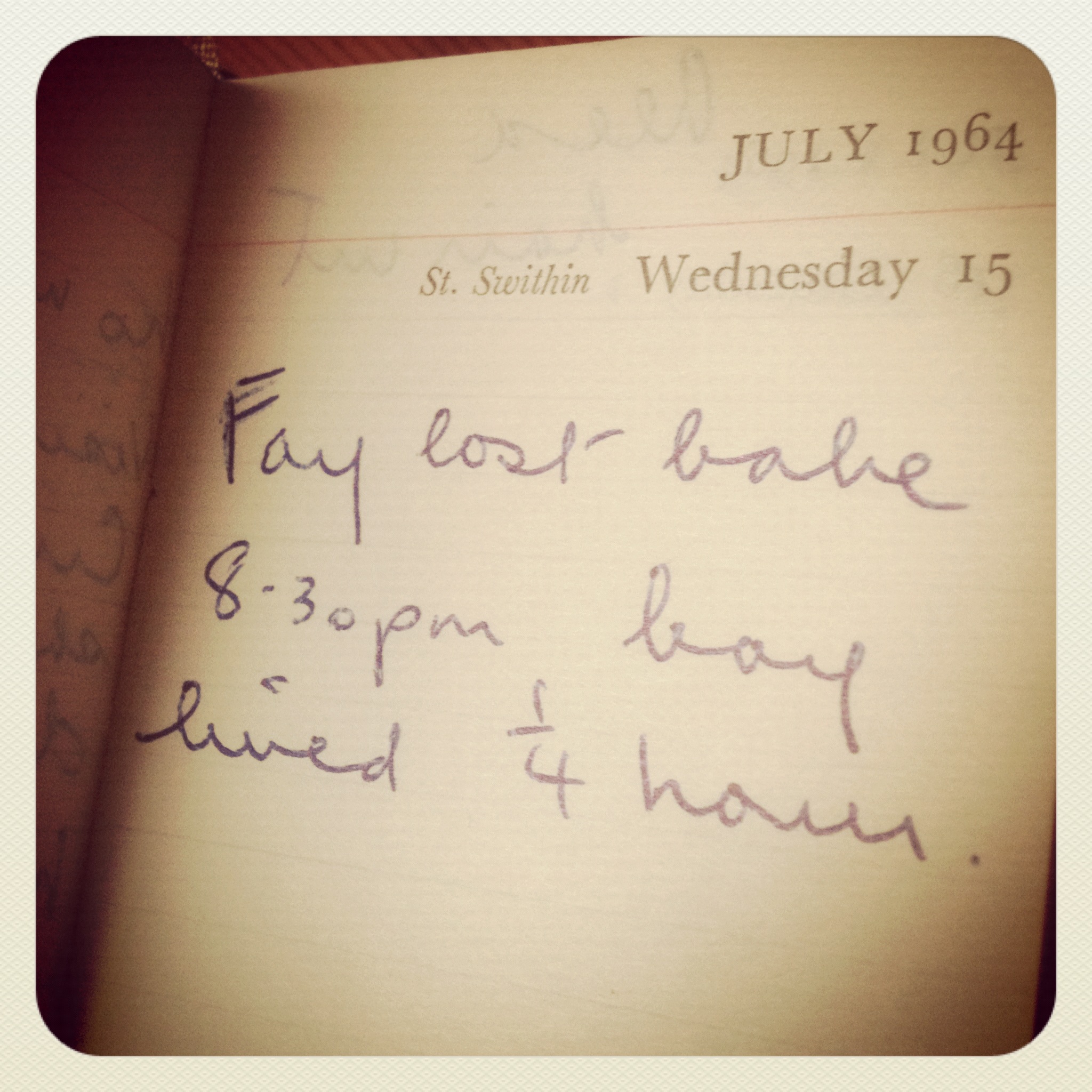 July 13th 1964; No word re Fay yet and then two days later Fay lost babe. 8.30pm. Boy. Lived 1/4 hour.
