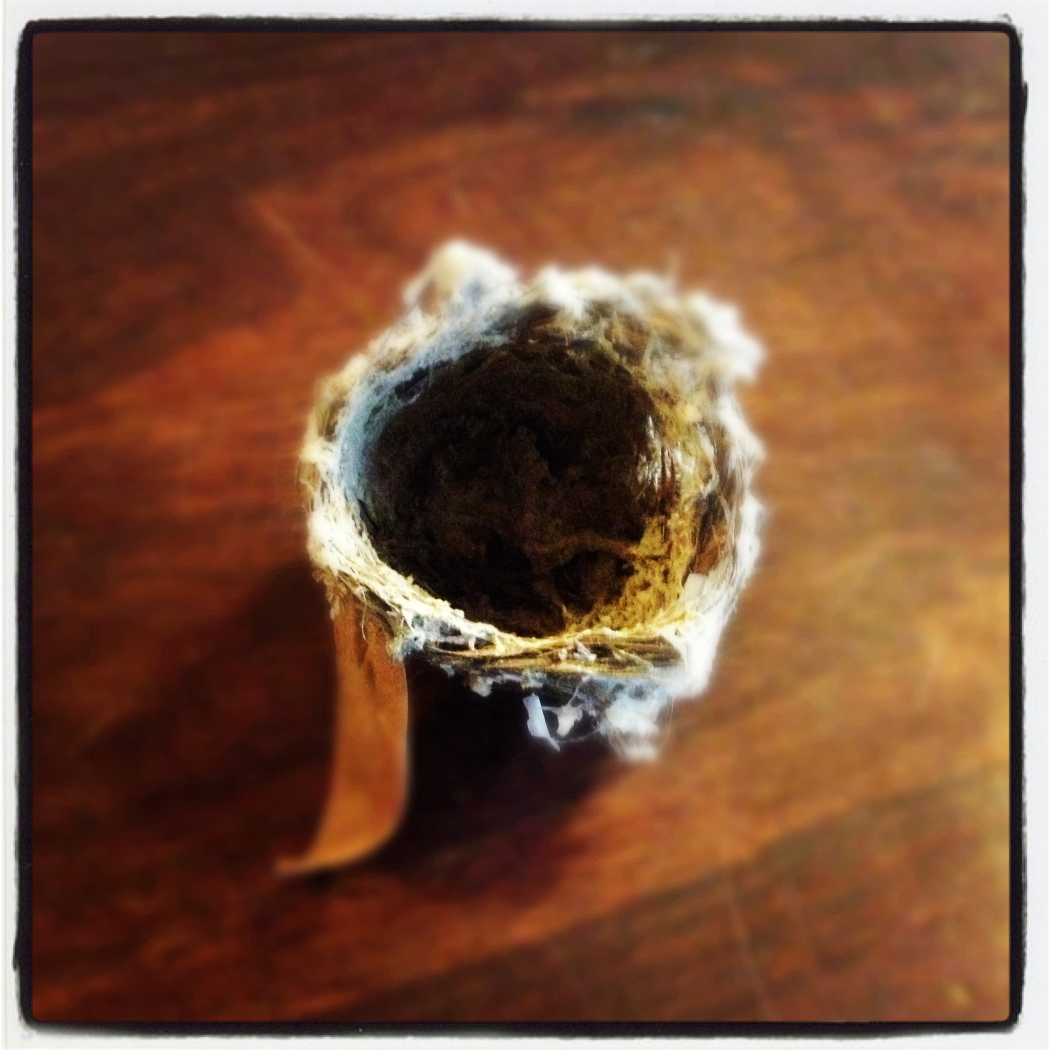 “No. The nest is still there.” He calls back, relieved. It is wedged into the fork of two skinny branches. It is deep and cupped. It is no flimsy structure.