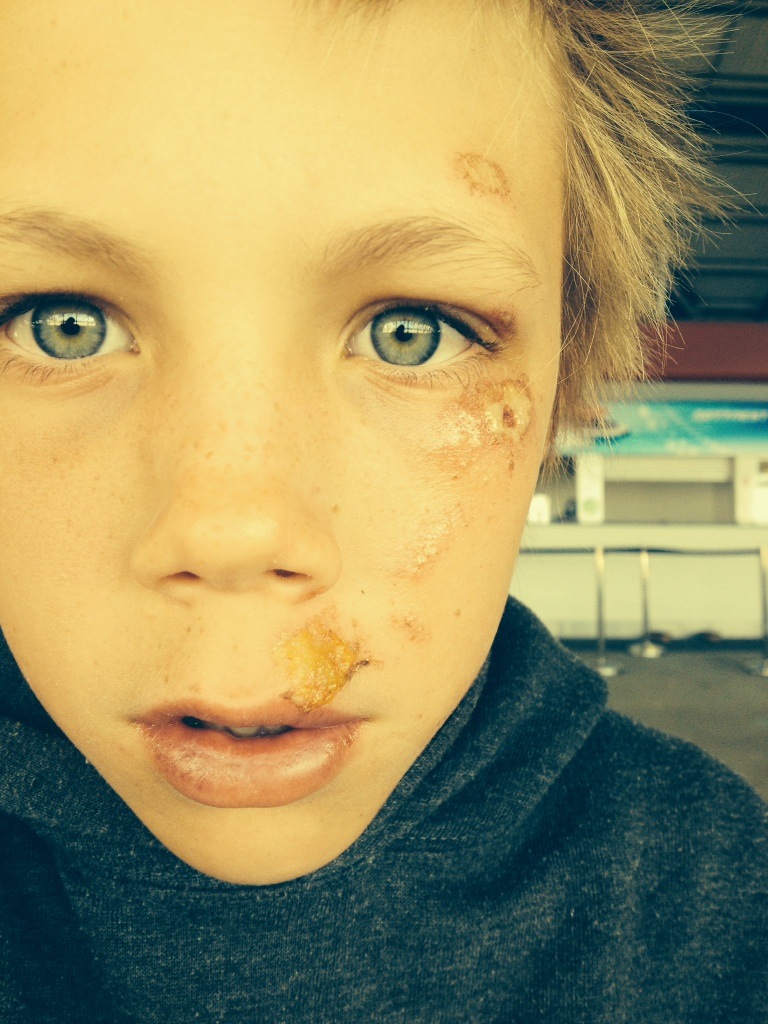 We are about to have coffee at the Geordie Cafe when my phone rings. The phone says it is Jasper but it is not him. Instead a woman says – is this Jasper’s mother? He’s had an accident and asked me to ring you. He’s fallen from his bike. He’s grazed his face. I ask the woman where he is and tell her to tell Jasper that his Dad is on his way. Graham wants to know how bad the injury is? It’s his face, I say. Gravel rash is always painful but especially so as it crosses your lip and cheek and eyebrow. Luckily the teeth are intact. We never discover what was the cause of the bike accident. There were no Quokkas to blame. No other cyclists or random sticks or potholes. Just over the handlebars he flew, seeing the road as he came down hard to meet it. At the nurses station they cleaned the wounds and trimmed the flap of skin hanging over his lip with a scalpel blade.